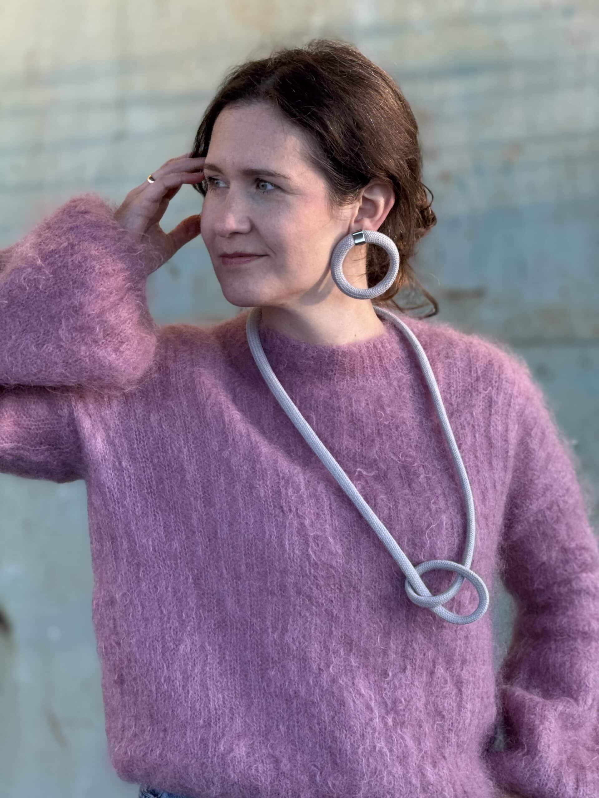 Są dodatki, które grzecznie stoją w miejscu. Ten naszyjnik robi odwrotnie. Naszyjnik bawełniany jasny szary żyje razem z Tobą, a jednocześnie nie krzyczy. Daje lekkość, ale też charakter. I dlatego pasuje do białej koszuli, swetra, sukienki i marynarki.