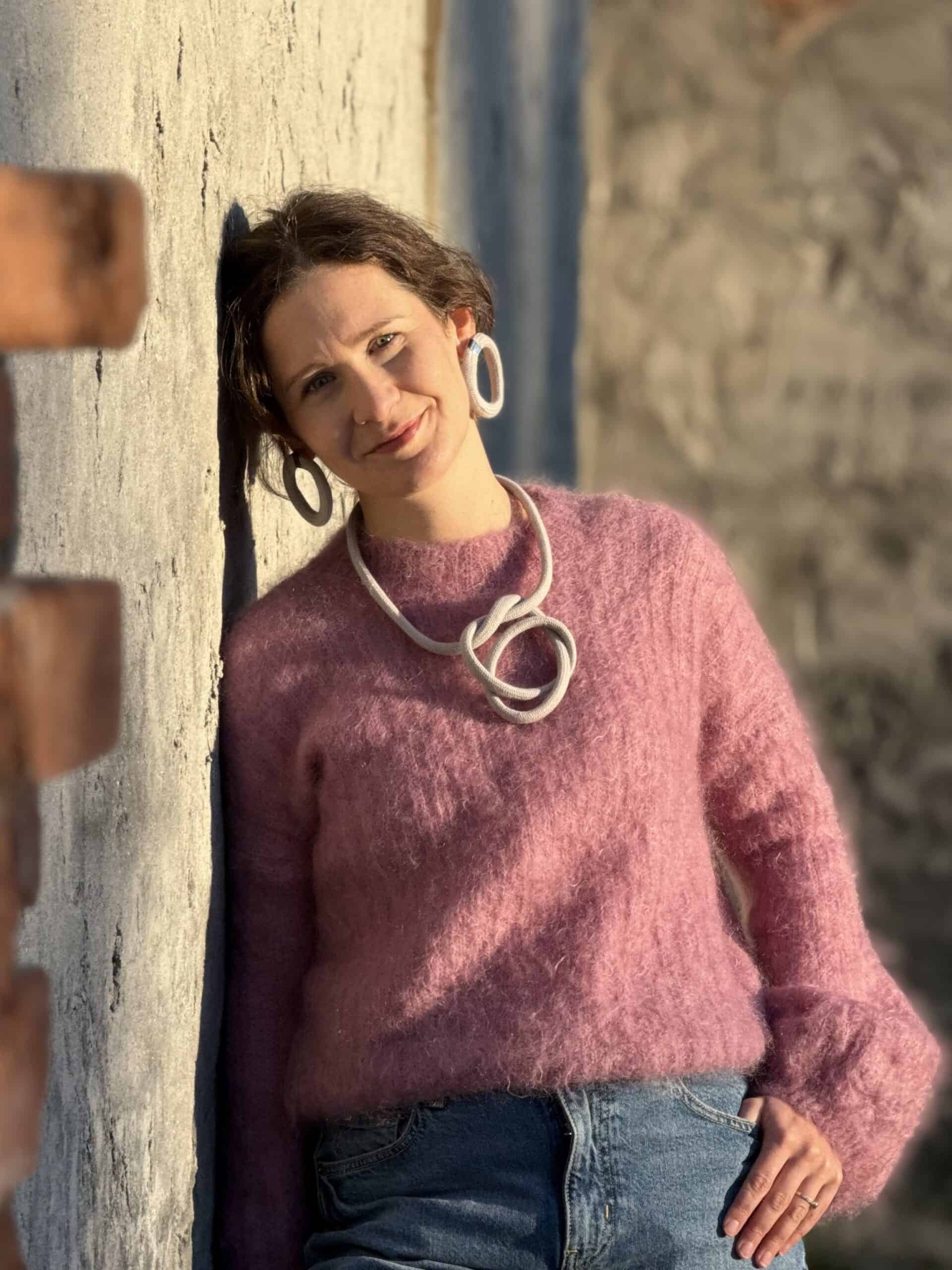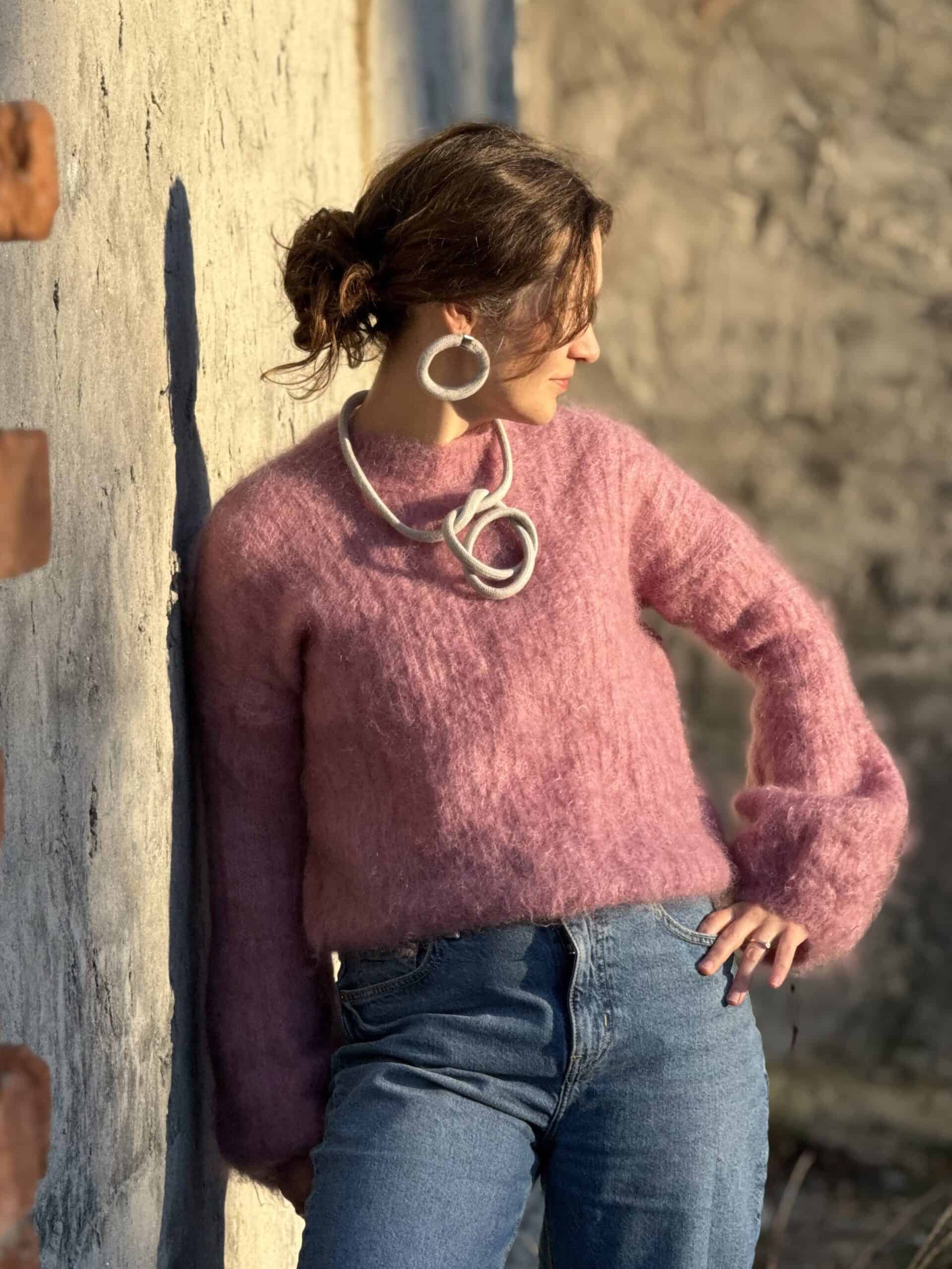 Tworzę go ręcznie w Made By Mila. Pracuję spokojnie i dokładnie, bo liczy się rytm splotu oraz miękkość w dłoni. Wybieram jasny szary, ponieważ łączy się z każdym kolorem. Łagodzi mocne stylizacje, a przy neutralnych dodaje nowoczesnej linii.