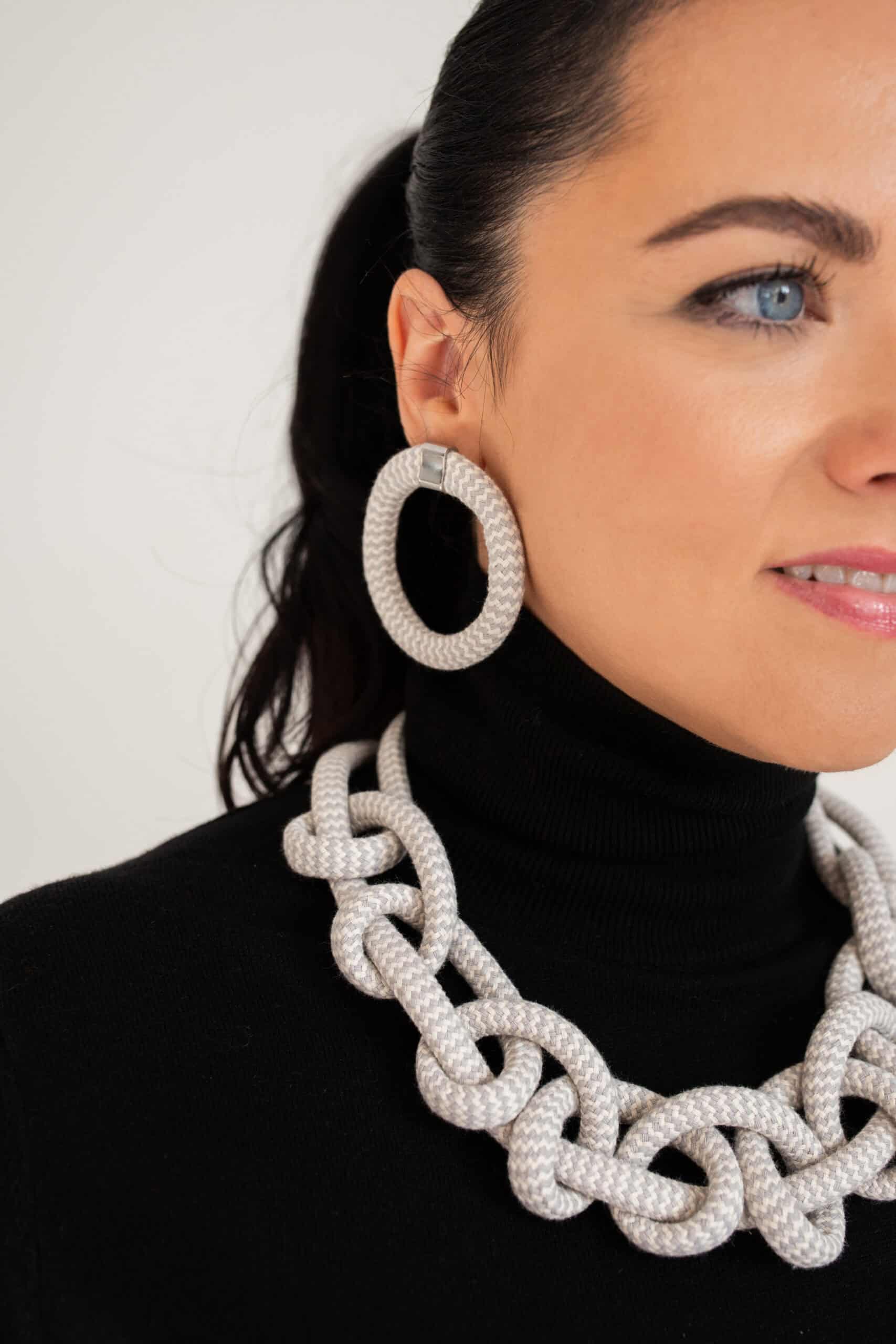 Ten model podkreśla linię dekoltu i rozświetla twarz. Ten naszyjnik bawełniany świetnie wygląda z czernią, ale równie dobrze gra z bielą i beżami. Możesz założyć go do swetra, a także do koszuli. Sprawdza się na co dzień, ponieważ nie obciąża szyi. Sznury układają się miękko, więc nosisz go długo i z przyjemnością. Bawełna potrafi też zatrzymać zapach perfum, dlatego Twój ulubiony aromat zostaje z Tobą dłużej.