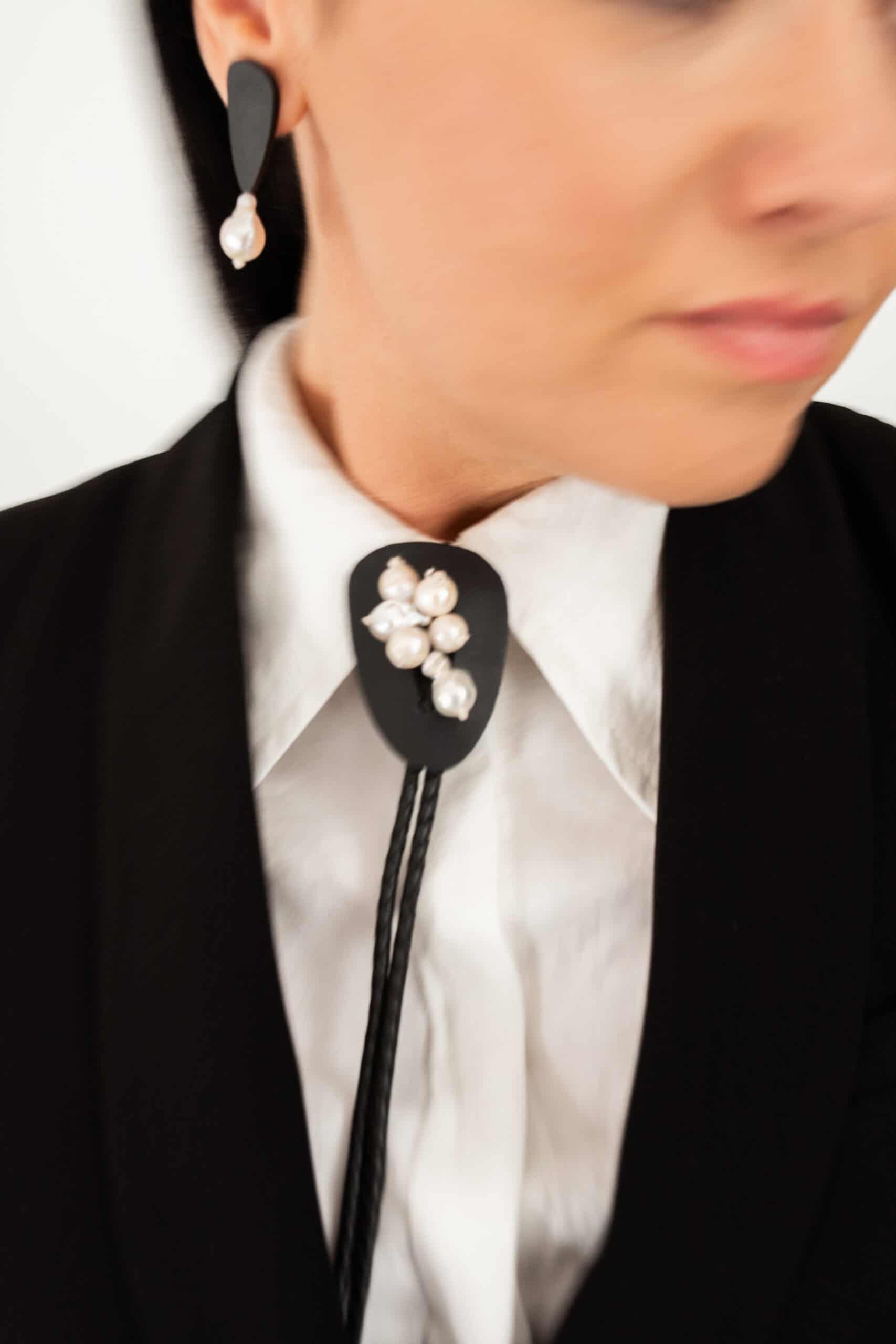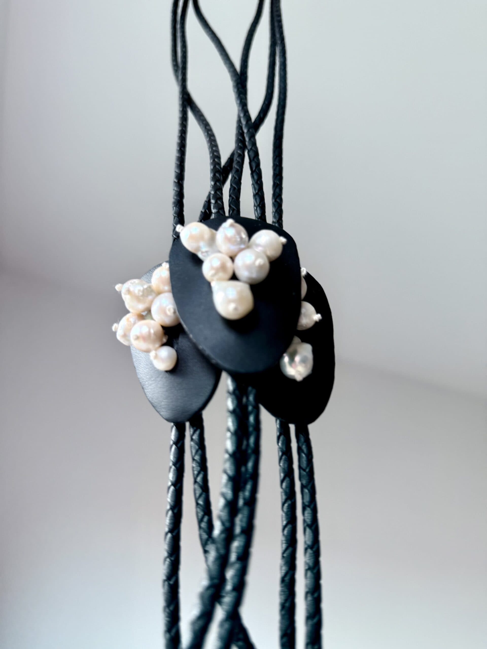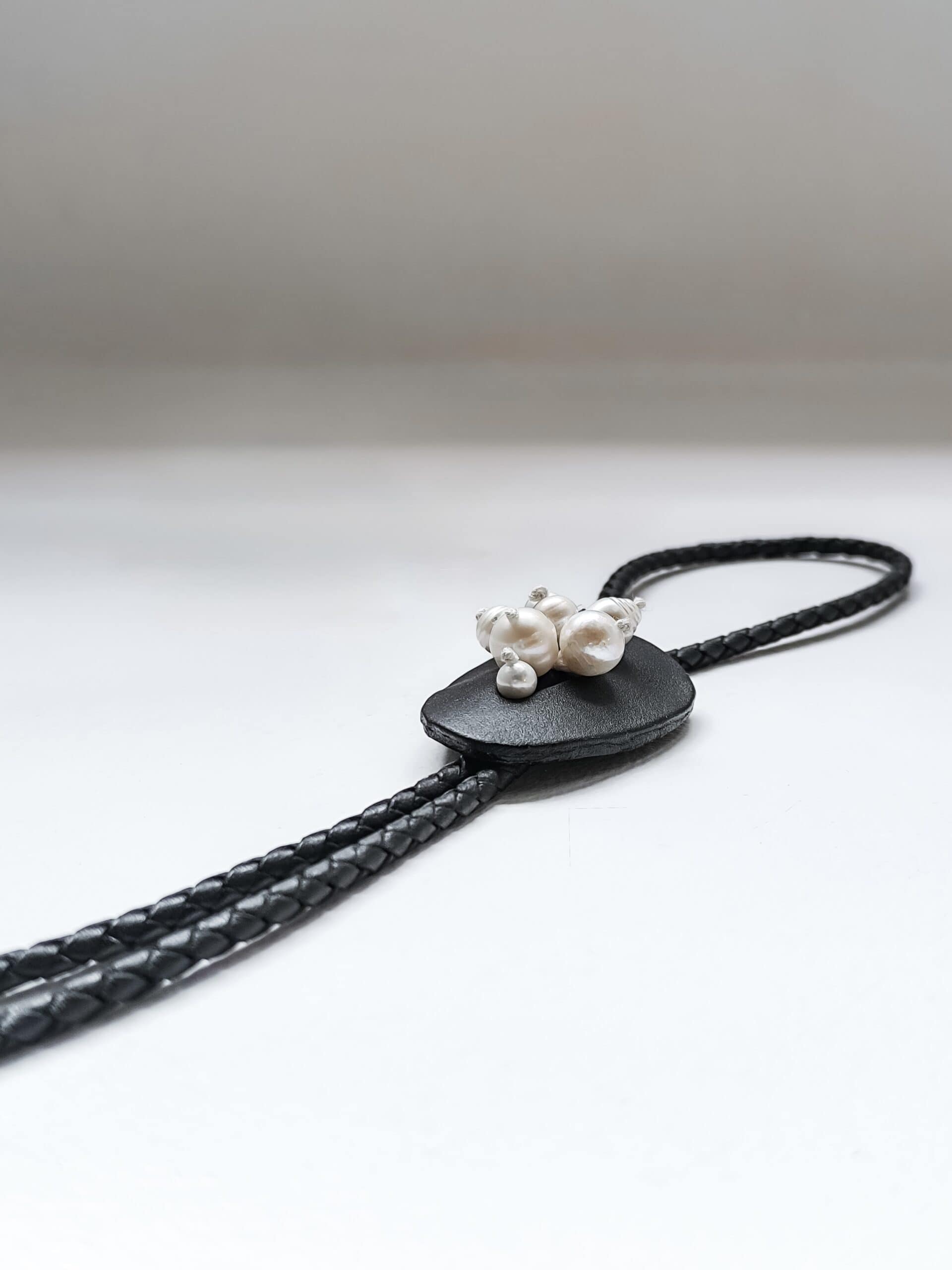 Naszyjnik skórzany BOLO – krawatka z perłami barokowymi