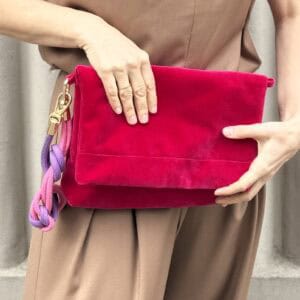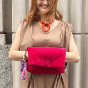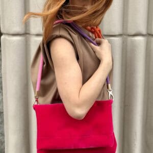 Torebka Made By Mila to siła prostoty i oryginalności. A ta wersja w kolorze pomarańczowym robi to bez wysiłku. Kolor żyje. Welur pracuje ze światłem. Dlatego torebka wygląda inaczej w słońcu, a inaczej w cieniu.