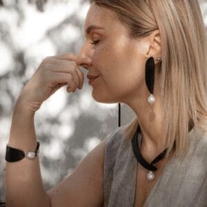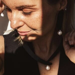 - Czarna kolia skórzana z perłą barokową łączy nowoczesny minimalizm z miękką elegancją. Ręcznie wycinam każdy kształt, a perła pozostaje absolutnie unikatowa, dlatego Twoja biżuteria nigdy się nie powtórzy. Zapięcie ze stali szlachetnej 316L oraz przedłużka 5 cm pomagają idealnie dopasować kolię do szyi. Najważniejsze: naturalna skóra w głębokiej czerni perła barokowa (każda inna) stal szlachetna 316L, bezpieczna dla wrażliwej skóry regulacja: przedłużka 5 cm